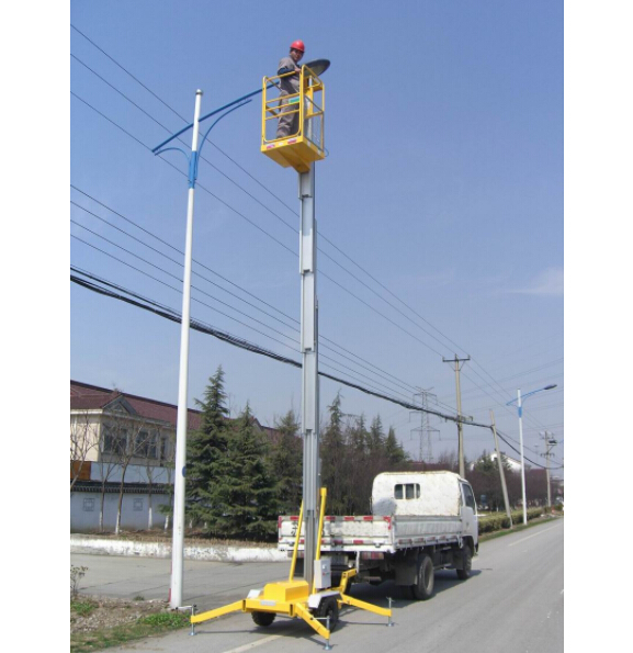 為適應野外及道路上長時間、長距離移動工作要求,設計生產拖車式鋁合金升降平臺,此款機型底盤加高設計,輪子采用400-8充氣輪,適合長距離移動,可加配電池單直流配置,在野外作業無需電源,亦可輕松作業。