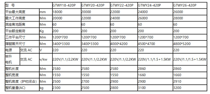 • 平臺高度:可選18m、20m、22m、24m、26m